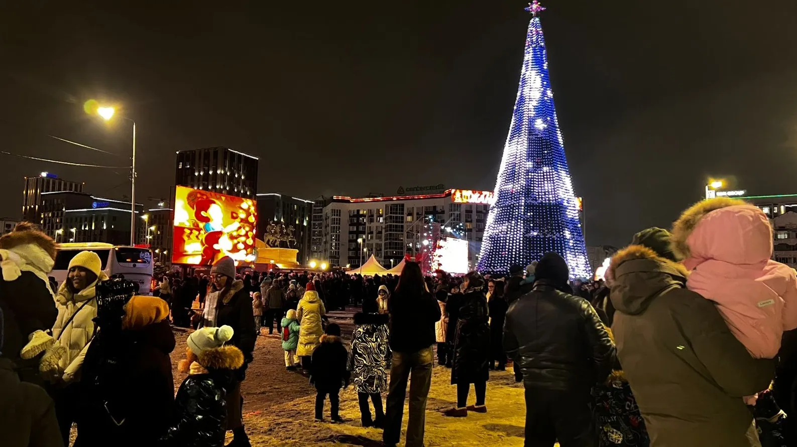 Пока оперативные и коммунальные службы Атырау усиленно работали, горожане праздновали. Они собрались на центральной площади, чтобы посмотреть фейерверк и полюбоваться главной елкой. Зрелище собрало около 100 человек. Дети визжали от восторга, родители смеялись и фотографировали их. Эмоции переполняли всех. Некоторые катались на надувных бубликах прямо по свежевыпавшему снегу, который украсил город в канун Нового года – редкое удовольствие для атыраусцев.