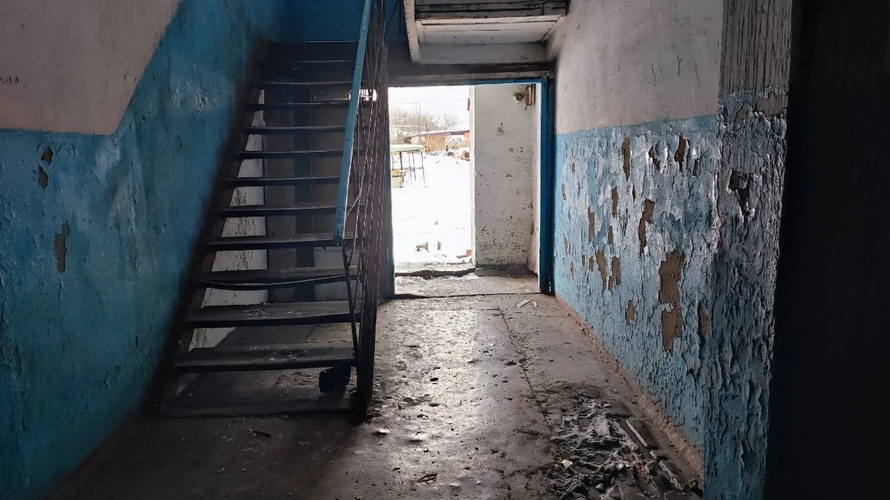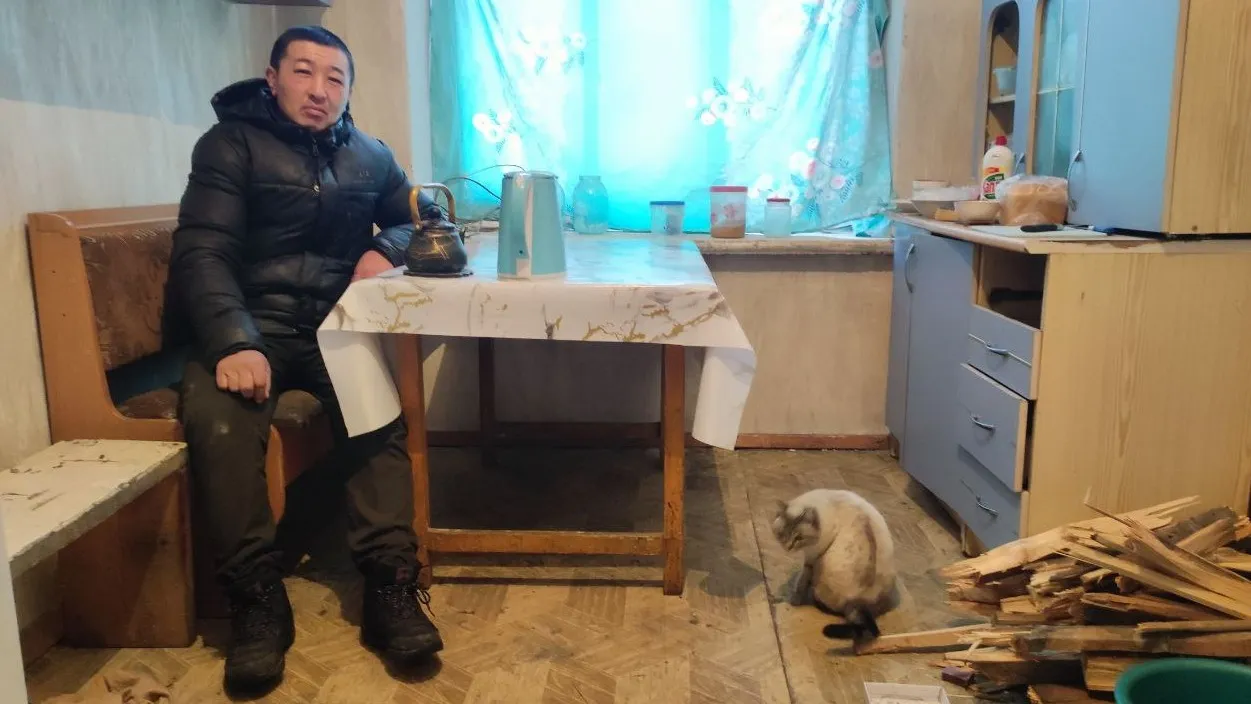 Единственная жилая квартира на втором этаже принадлежит Нуржану Байгапанову. У него инвалидность, вторая группа. Живет с дочерью и сыном. Оставить жилье не может. Ему просто некуда идти. Топит печь каждый день, но тепла едва хватает, чтобы немного обогреть кухню. В спальне приходится включать электрообогреватель.