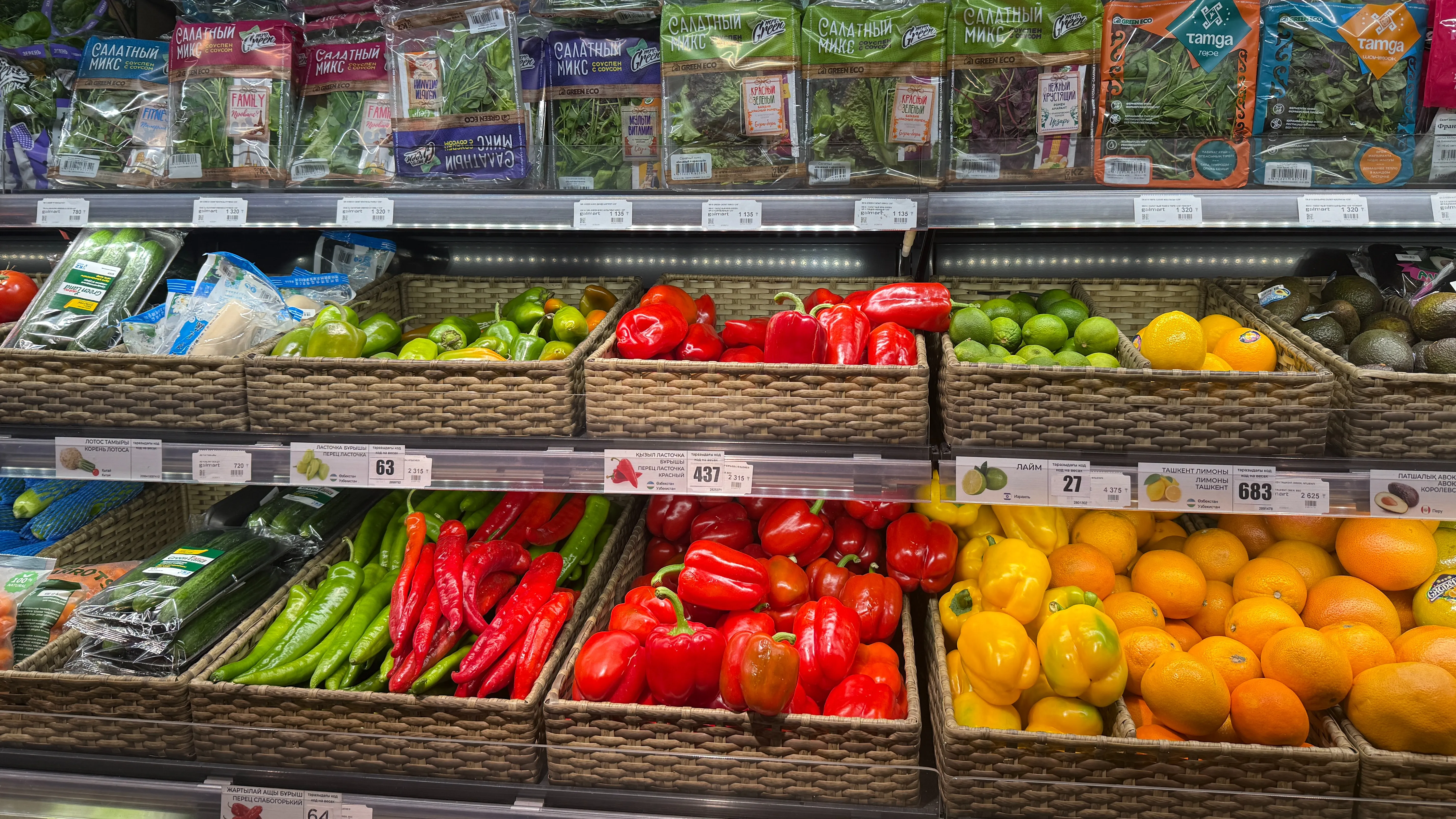 Китай отправляет к нам яблоки, груши, цитрусы, часто идеально ровные и глянцевые, словно прошедшие кастинг на обложку каталога. Из Ирана везут гранаты, киви и цитрусовые, из Турции – мандарины, лимоны и томаты, из России тепличные овощи и картофель. Параллельно работают и казахстанские теплицы, обеспечивая нас огурцами, помидорами и зеленью даже в самый разгар зимы.