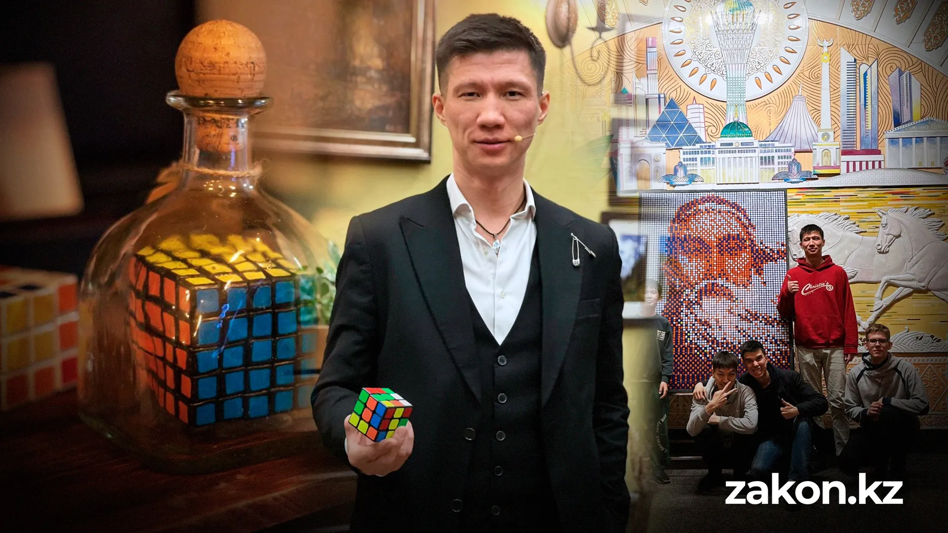 35-летний иллюзионист Женис Айтжанов из Алматы славится не только своими фантастическими фокусами, но и яркими картинами, собранные из кубика Рубика.