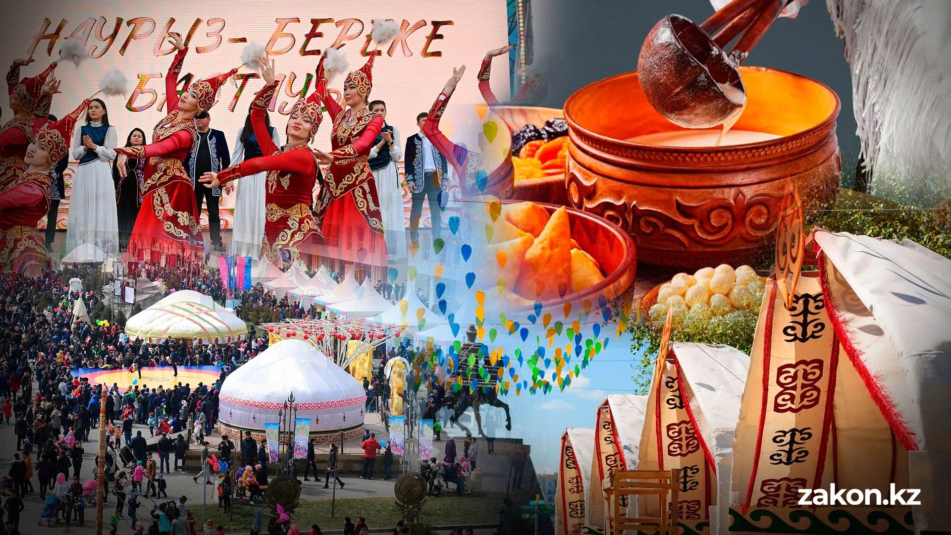 22 марта – Жыл басы, Наурыз мейрамы – кульминация года: массовые гуляния в этноаулах, алтыбакан, песни и щедрый дастархан с наурыз көже.