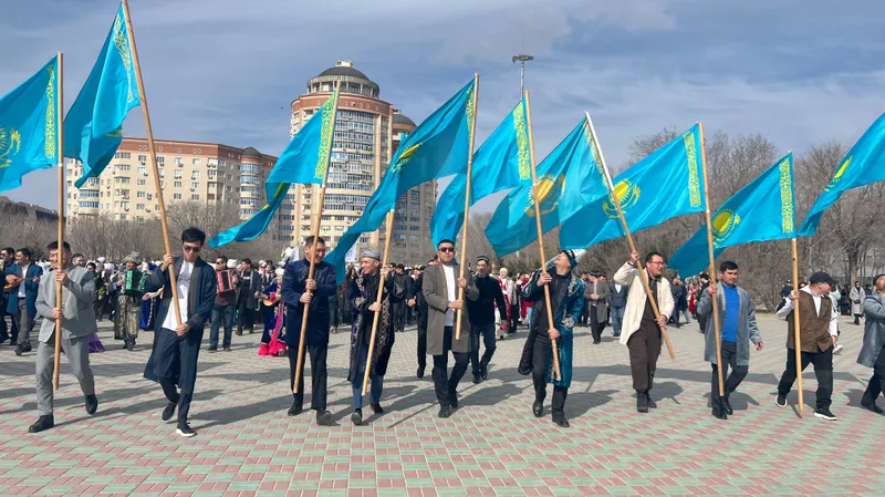 По всему маршруту шествия звучали народные мелодии и патриотические песни, создавая атмосферу настоящего весеннего праздника. Как отметили в городском акимате, в шествии приняли участие представители различных организаций и учреждений: трудовые коллективы, этнокультурные объединения, учебные заведения, государственные служащие, а также представители сферы культуры и спорта.
