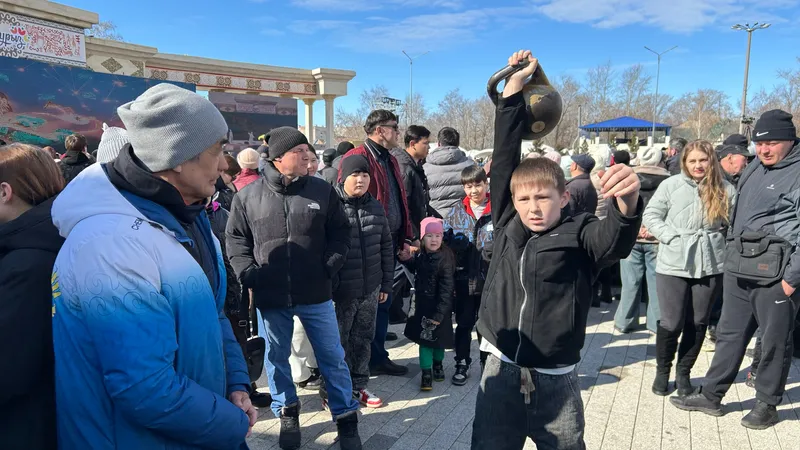 Для местных батыров Наурыз – праздник здорового тела и сильного духа. Пока одни состязаются в приседаниях с 33-килограммовым мешком в форме барана на плечах, другие, как игрушку, поднимают 25-килограммовую гирю.