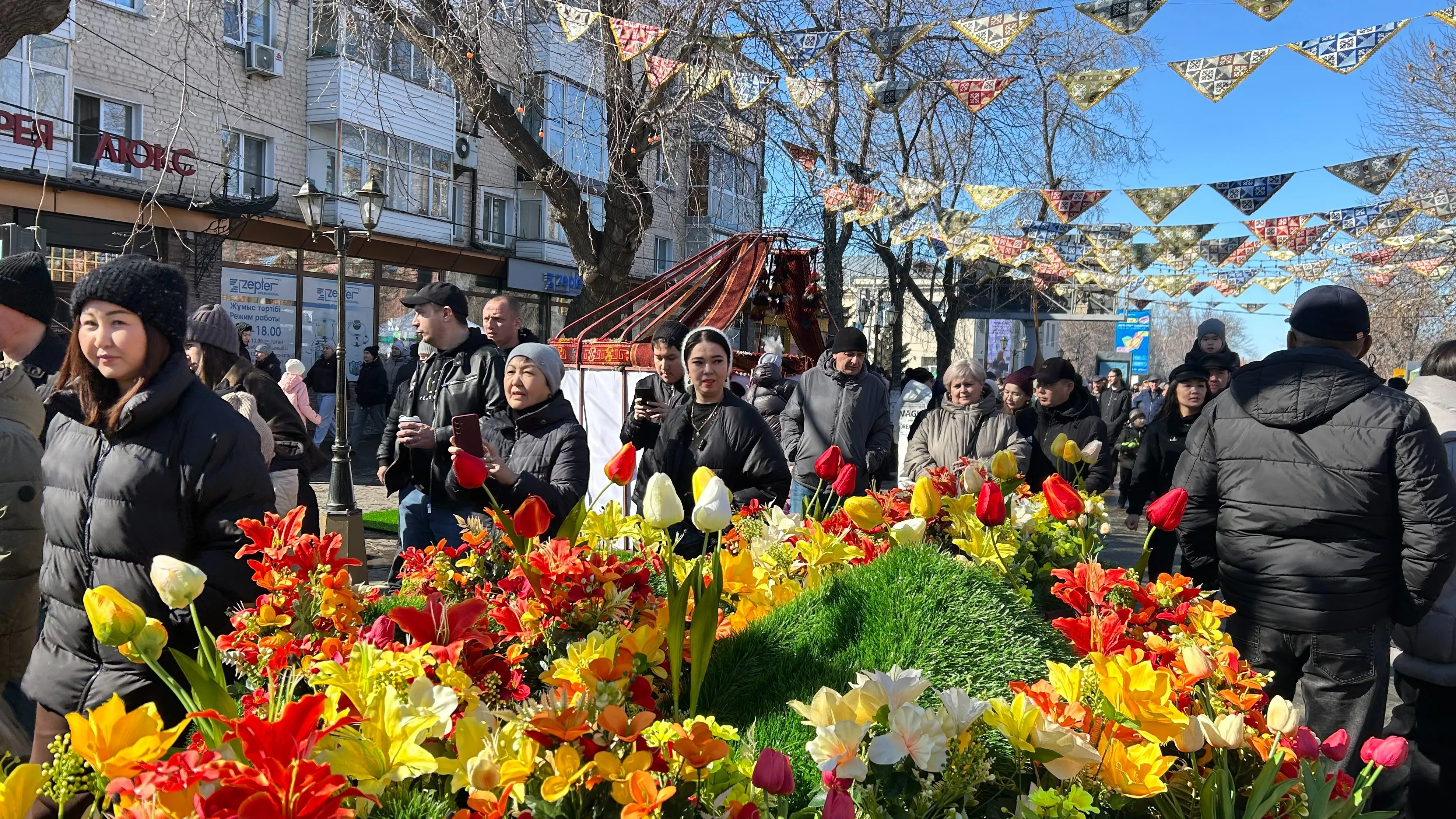 На главной улице города – Конституции Казахстана – яблоку негде упасть. Пешеходный проспект, который претендует на место в Книге рекордов Гиннесса как самый длинный мире, превратился в море изумленных цветочной красотой людей.