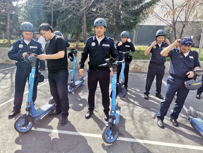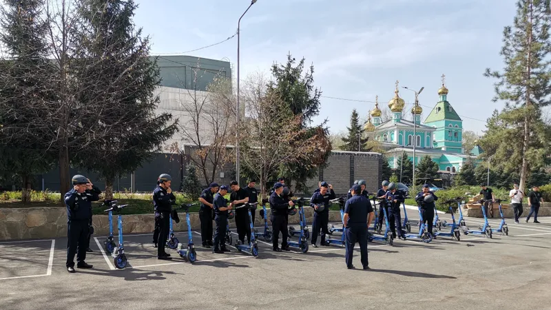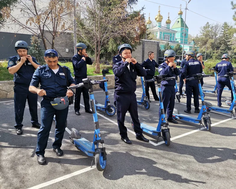 Ровно в 10 утра на плацу алматинского департамента полиции построились патрульные… с самокатами.