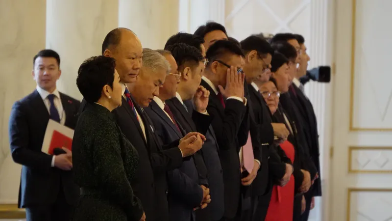 В это же время представители монгольской делегации несколько раз поправляли костюмы, переглядывались, делали фотографии.