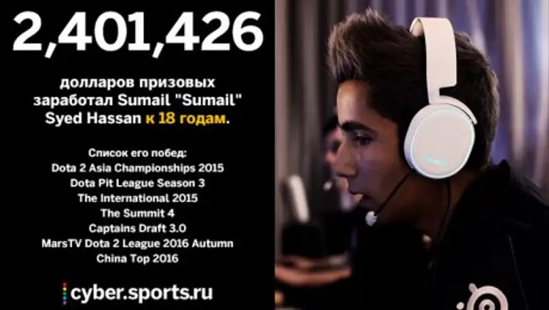 Сегодня в списке лидеров по сумме призовых в киберспорте Сумаил идет на третьем месте.