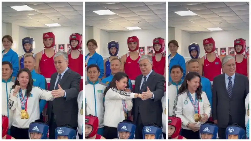 Касым-Жомарт Токаев похвалил Дину Жоламан и подтвердил, что удар у нее хороший. В ответ именитая боксерша сказала: "Ну это я еще не старалась", и все рассмеялись.