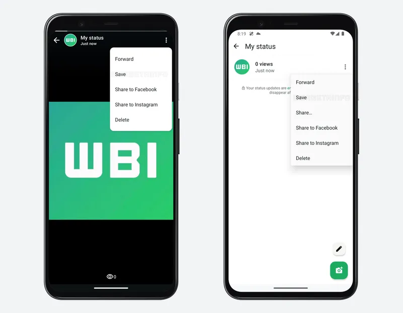 Как пишет Wabetainfo, новая функция позволит сохранять обновления статуса прямо в галерее телефона. Она будет особенно полезна в случаях, когда пользователи случайно удалили фотографию или видео со своего устройства после публикации их в качестве обновления статуса. До этого обновления для получения таких медиафайлов пользователям требовалось пересылать обновление статуса в чат или группу, а затем сохранять его оттуда, что было не идеальным решением.
