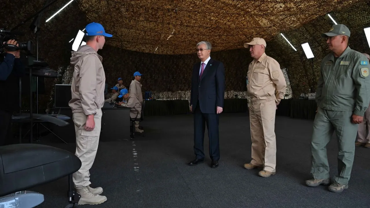 "После церемонии открытия министр обороны генерал-лейтенант авиации Даурен Косанов презентовал главе государства инновационный учебно-тренировочный комплекс подготовки операторов FPV-дронов и летного состава, оснащенный современными тренажерами и симуляторами".