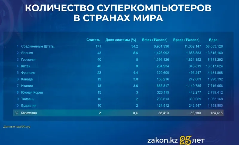 Казахстан ворвался в Топ-30 мировых IT-держав: два суперкомпьютера вывели страну на 27 место