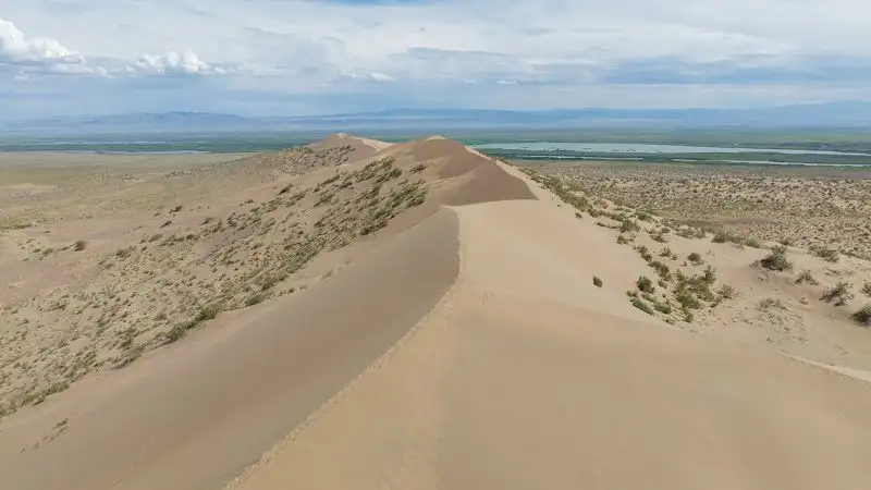 Расположение и как добраться. Песчаная дюна находится на территории Государственного национального природного парка "Алтын-Эмель". Она включена в список семи чудес Казахстана и является официальным памятником природы. Бархан возвышается неподалеку от реки Или. Природная достопримечательность располагается в более чем 300 км от Алматы. Сначала нужно доехать до Сарыозека, далее свернуть в сторону Жаркента и достичь поселка Басши. От нее до дюны ведет грунтовая дорога. К бархану регулярно организуются автобусные экскурсии. Также доехать к нему можно на личном транспорте.