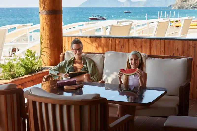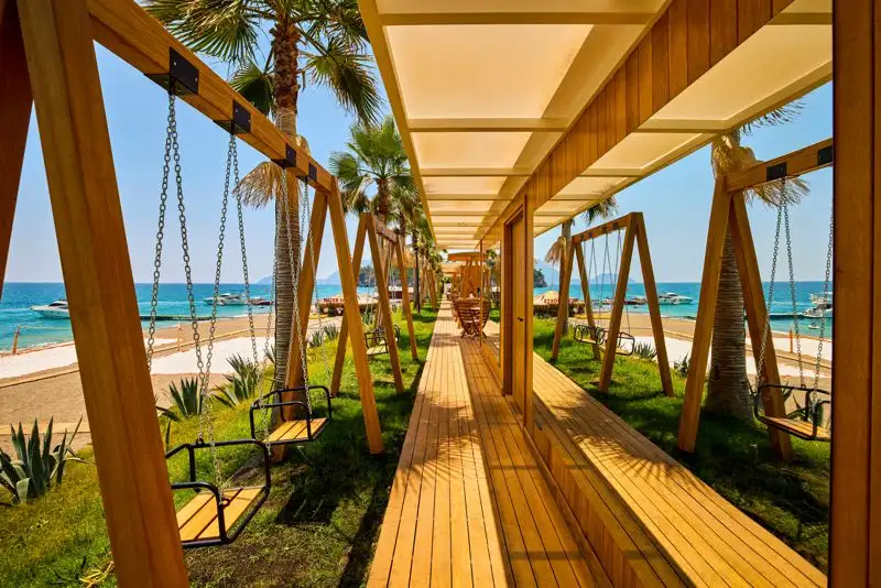 Но какой же семейный отдых в райском уголке может быть без моря? Кристальная вода, чистый и современный пляж, выстроенные в ряд стройные белоснежные шезлонги. Для тех, кто все-таки против сильного загара, на пляже установлены специальные павильоны, где можно укрыться от палящего турецкого солнца и наслаждаться незабываемыми видами Средиземного моря.