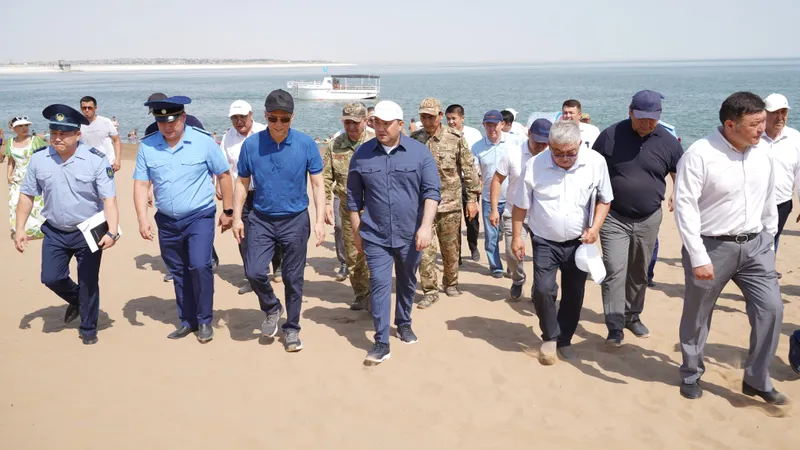 Сегодня аким области Нуралхан Кушеров посетил ряд мест отдыха, расположенных на берегу водохранилища "Шардара", где проинспектировал чистоту и безопасность. Глава области встретился с ответственными за пляжи лицами и предпринимателями и поручил ежедневно выполнять санитарные мероприятия.