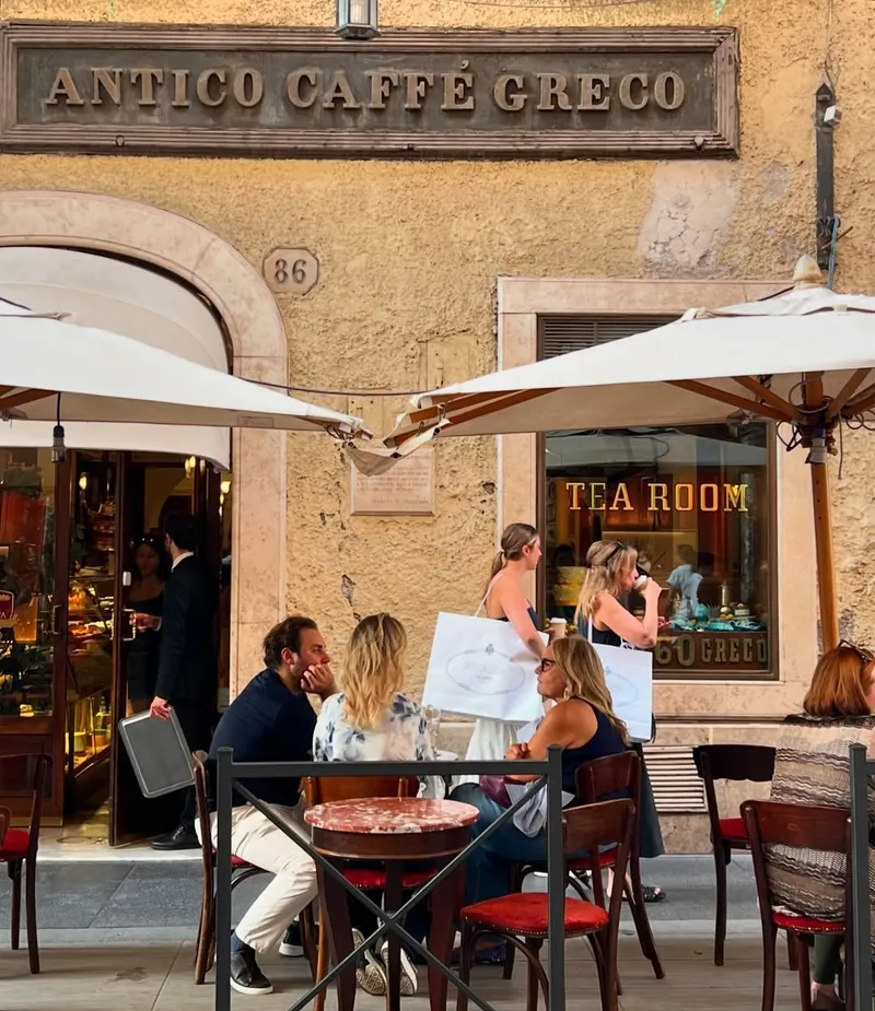 Кафе на улице Via dei Condotti на протяжении веков было местом встреч художников, писателей и музыкантов. Среди его посетителей – Иоганн Вольфганг Гёте, Рихард Вагнер, Федерико Феллини и Софи Лорен. Здесь бывали Фёдор Тютчев и Иван Тургенев. Интерьеры украшали медальоны и миниатюры с изображениями знаменитых гостей, а само заведение имеет статус объекта культурного наследия под охраной Министерства культуры Италии.