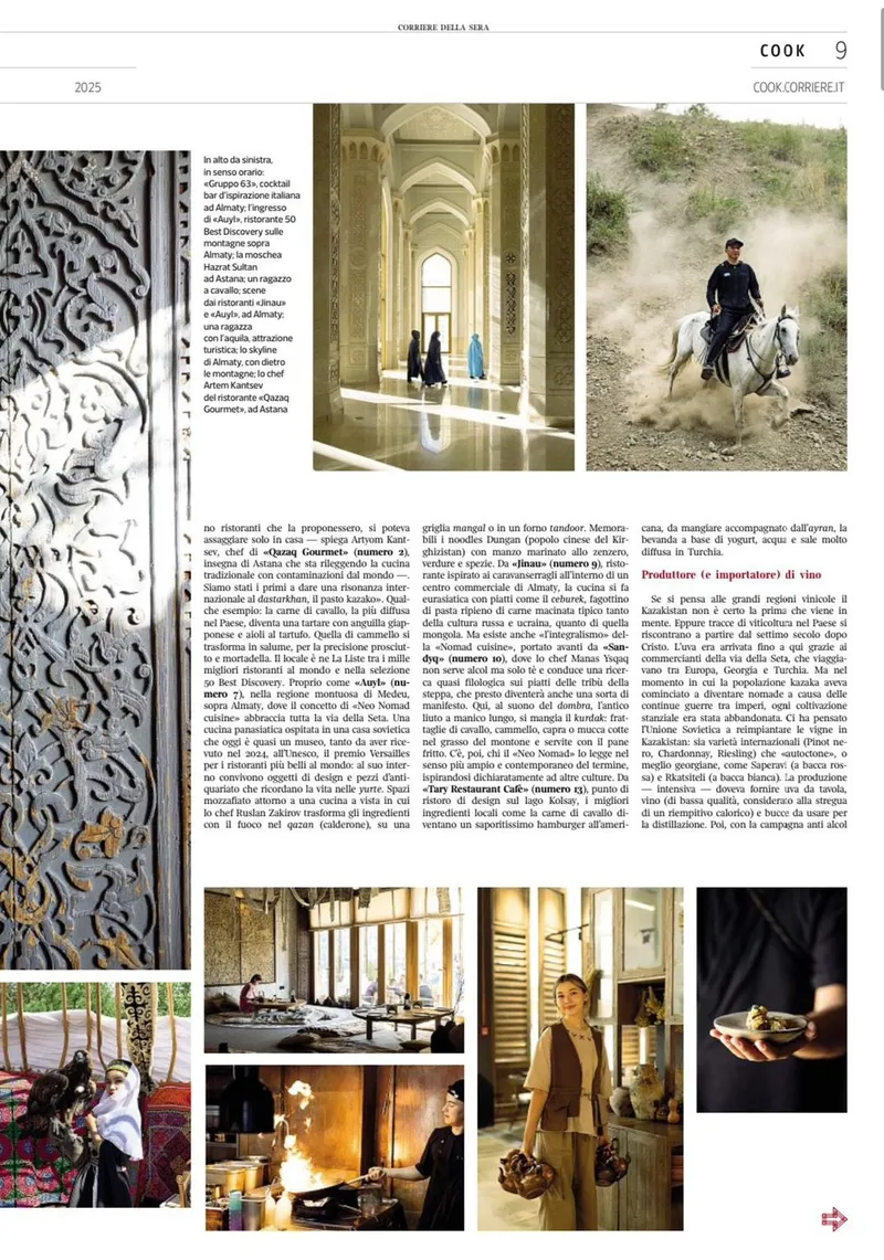 Материал рассказывает о современной гастрономии Алматы: национальная кухня, включая бешбармак, мясные деликатесы и кумыс – ферментированное кобылье молоко, подается как в традиционных форматах, так и с современными интерпретациями в ресторанах, включая концепцию Neo Nomad cuisine. В статье также приводятся рецепты баурсаков, курта и свежего копченого мяса из конины, что позволяет читателям глубже познакомиться с казахской кухней. Среди отмеченных заведений – "Auyl", "Jinau", "Sandyq", "Tary", где блюда готовят по современным рецептам с использованием местных ингредиентов, сочетая исторические традиции и международное влияние.