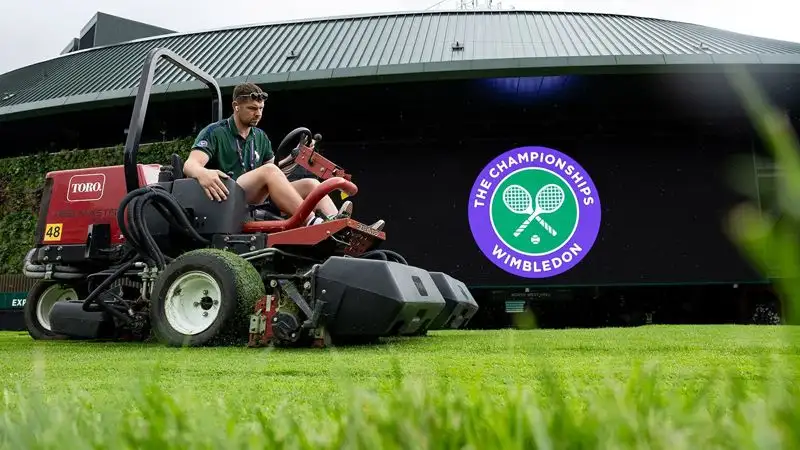 • Когда трава достигает высоты 15 миллиметров, ее впервые стригут. В мае стрижку повторяют три раза в неделю, а потом постепенно высоту травы сокращают на миллиметр в неделю и за месяц до начала соревнований выходят на нужный для тенниса уровень – 8 миллиметров. По ходу турнира корты каждый день стригут и обновляют линии.