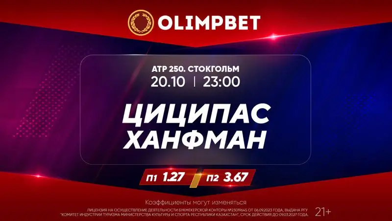 Аналитики Olimpbet уверены, что Циципас станет полуфиналистом – П1 – 1.27, П2 – 3.67. На то, что встреча будет затяжной и продлится более 22,5 гейма, предлагается коэффициент 1.92.