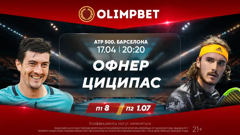 Аналитики Olimpbet уверены в проходе Циципаса – П1 – 8, П2 – 1.07. Коэффициент на то, что он выиграет турнир в Барселоне, равен 4.