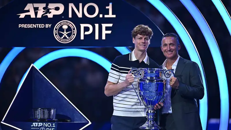 Jannik Sinner receives the ATP Year-End No. 1 trophy presented by PIF on home soil! #PIF | #ATPRankings | #partner pic.twitter.com/boOV9m9jHa