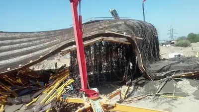При проведении строительных работ строящегося моста в Алатауском районе произошло обрушение 6 пролетов моста по 18 метров. Всего около 108 метров.