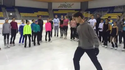 В честь открытия нового Ледового Дворца «Халык Арена» в Алматы состоялась открытая тренировка бронзового призера Олимпийских игр 2014 года в Сочи по фигурному катанию Дениса Тена.