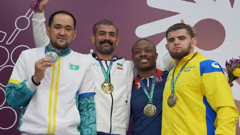 Также еще три казахстанских палуана отметились медалями. Серебряную награду завоевал Асылан Тажиев в весе 97 кг. А Нуржан Асан (77 кг) и Алдияр Балташев (60 кг) довольствовались бронзовыми наградами.