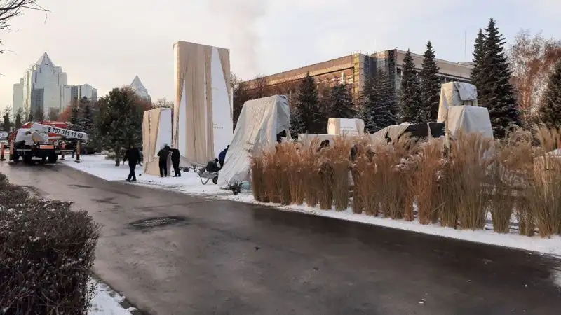 Корреспонденту Zakon.kz удалось запечатлеть подготовку мемориала накануне открытия.
