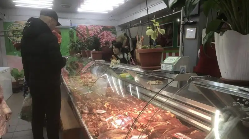 В канун Нового года резко подорожали мясные и рыбные деликатесы. Шужук из конины стал дороже на 100 тенге и стоит от 4500 тенге, говяжий язык стал дороже на 700 тенге и стоит около 4200 тенге. А копченая рыба кета, например, продается уже не по 6500, а на 2 тыс. тенге дороже.
