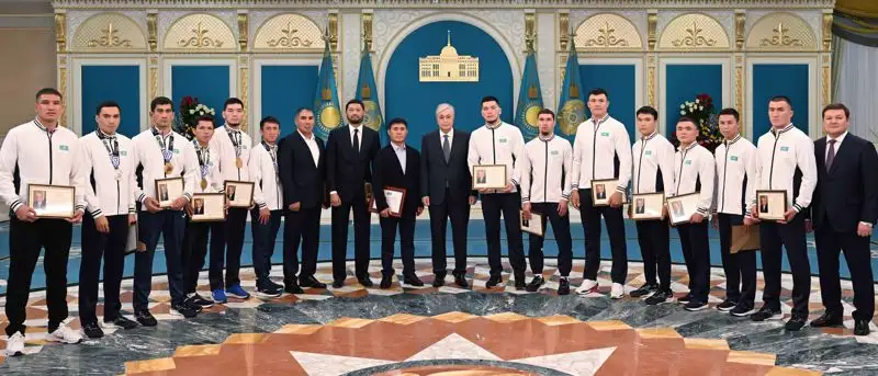 "Шахматистка Бибисара Асаубаева стала чемпионкой мира по блицу. Теннисистка Елена Рыбакина несколько раз подряд достигала высот на самых престижных мировых турнирах. Наши борцы, в том числе и наши девушки, завоевали 7 золотых медалей на чемпионате Азии. Нургиса Адилетулы стал чемпионом Азии по тяжелой атлетике. Казахстанские футболисты и хоккеисты также показывают хорошие результаты. Безусловно, в спорте есть победы и поражения. Вместе с тем наши спортсмены добились больших высот. Всем известно, что немалый вклад в это дело внесли тренеры и другие специалисты в спорте. Выражаю всем искреннюю признательность".Касым-Жомарт Токаев