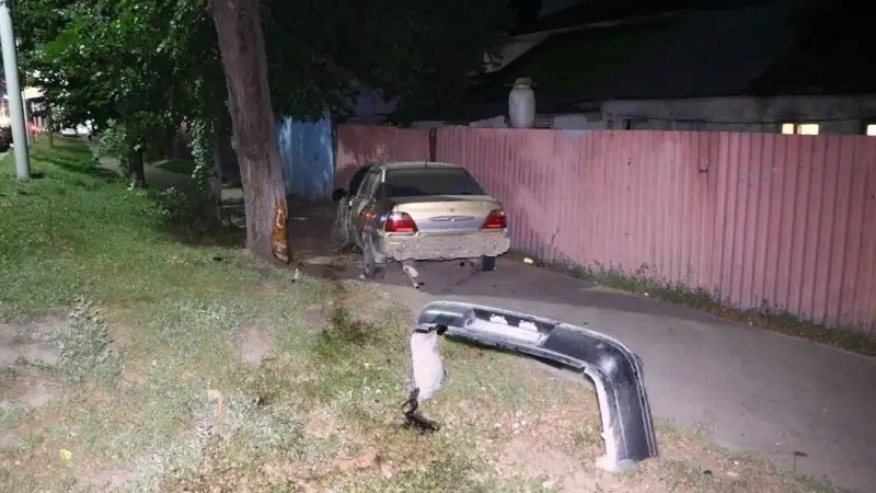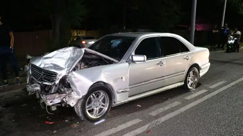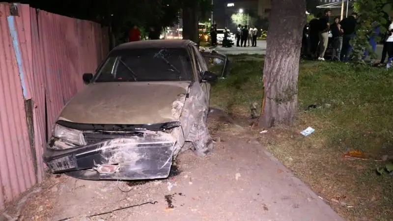 Daewoo Nexia и Hyundai столкнулись. Mercedes на высокой скорости врезался в Nexia. Nexia отбросило в сторону, машина перелетела через бордюр на тротуар и врезалась в дерево.