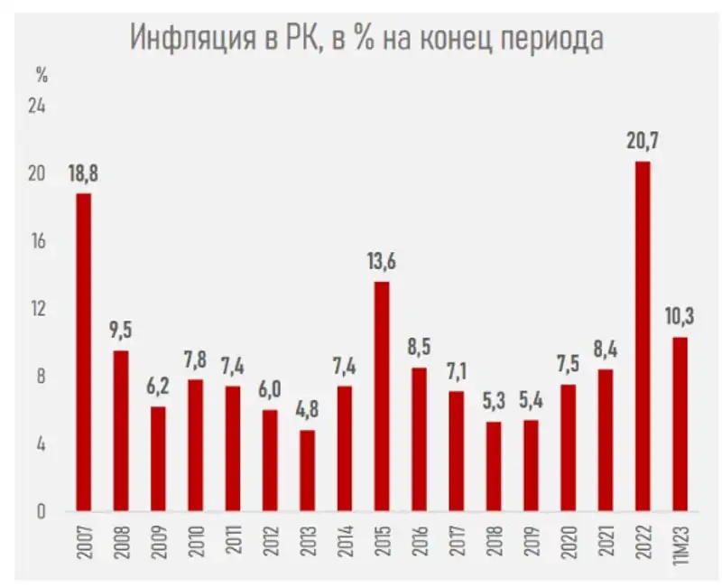 Так, в 2023 году инфляция снизилась в США с 6,5% до 3,1%, в Евросоюзе – с 8,6% до 2,4%, в КНР – с 1,8% до –0,5%, в Казахстане – с 20,7% до 10,3%, в России – с 11,9% до 7,5%.