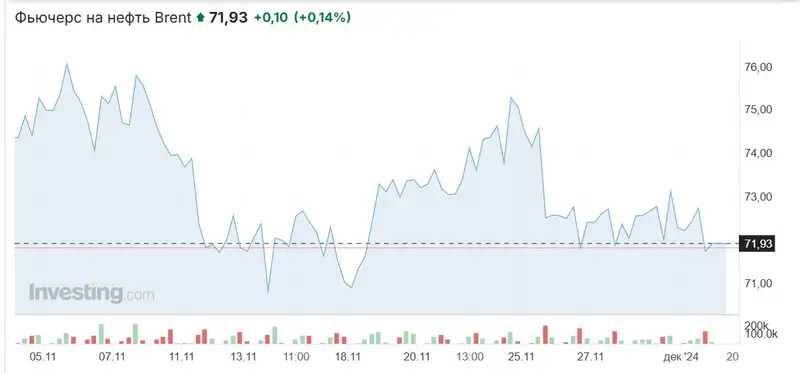 Что касается глобального рынка нефти, то стоимость фьючерсных контрактов на нефть Brent на лондонской бирже ICE сейчас находится на отметке около 72 долларов за баррель. Цена фьючерсов на нефть WTI на торгах Нью-Йоркской товарной биржи к этому времени составила около 68 долларов за баррель.