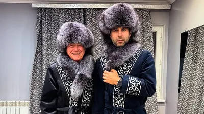 Артист опубликовал фото, на котором они с Познером позируют в казахской национальной одежде.
