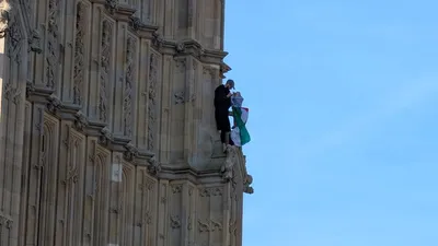 Мужчина залез на башню Биг-Бена в Лондоне с флагом Палестины