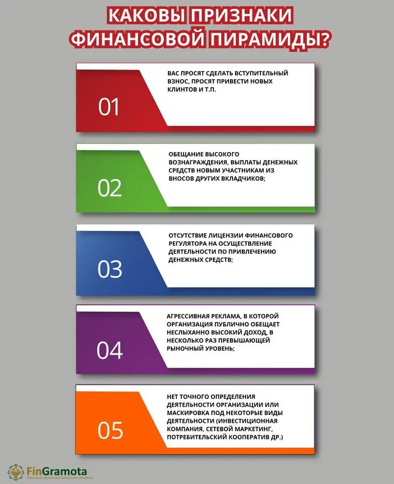 Если организация, которой вы хотите доверить свои деньги, обладает хотя бы несколькими из перечисленных признаков, стоит задуматься, не пытаются ли вас вовлечь в финансовую пирамиду.