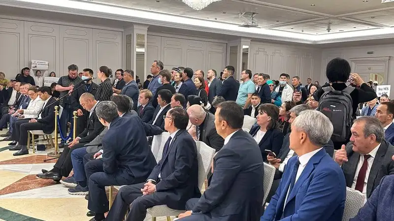 Слушания в Астане начались чуть раньше заявленного времени в гостинице Radisson в зале Saryarka. Но желающих, несмотря на дождь, было так много, что позже была организована трансляция в соседнем зале.