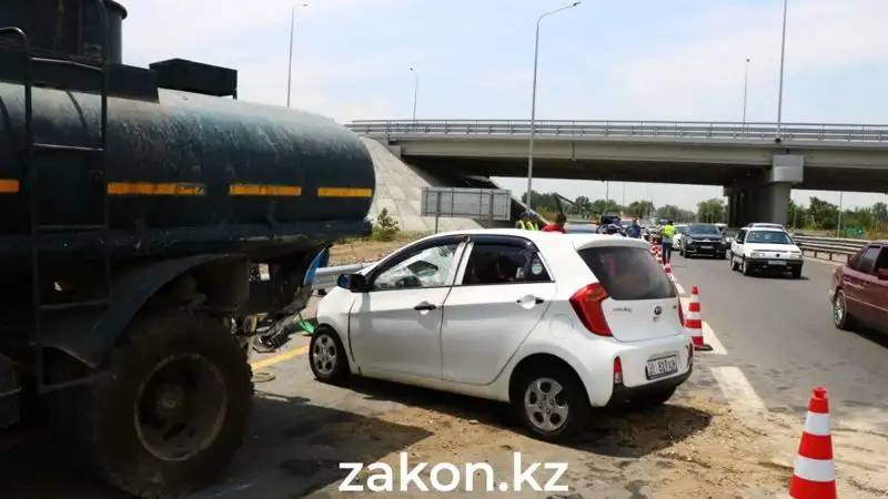 Из-за этого ДТП перекрыта одна полоса движения. Образовалась пробка, которая, по словам корреспондента Zakon.kz, растянулась на несколько километров из Алматы в сторону области на восток.