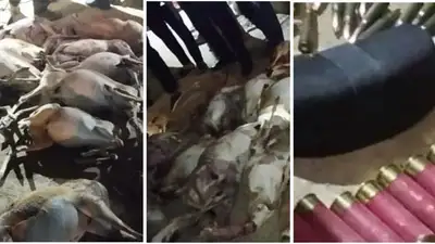 В результате обыска автомобиля Toyota Sequoia в багажнике, помимо туш животных, также было обнаружено охотничье ружье, патроны, топор, ножи и семь зарядных устройств.