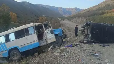 По данным начальника Департамента полиции Алматинской области Бауржана Аленова, 47-летний водитель автобуса, выехав на полосу встречного движения, допустил лобовое столкновение с автотранспортом "УАЗ" под управлением гражданина О. 1997 г. р.