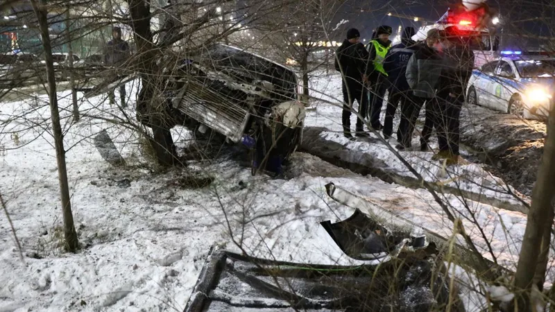 В результате столкновения Mitsubishi ударил Chevrolet, после чего вылетел с дороги, перескочив бордюр и несколько рвов, и врезался в дерево.