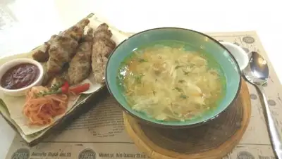 Наш выбор стоил немного дороже. Суп лапша по-домашнему, люля-кебаб из курицы и обслуживание обошлись в 638 тенге. Однако если выбирать самые дешёвые пункты меню, то уложиться в обещанные градоначальником 500 тенге удастся, а стало быть, ресторан так же подходит под наш список заведений, опубликованный ранее. Стоит отметить, что обслуживание и еда в заведении на высоком ресторанном уровне.