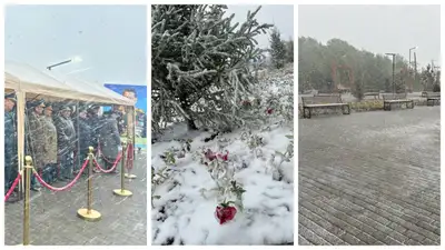 Непогода разыгралась в день открытия памятника и сквера в честь 100-летия Героя Советского Союза, Халық қаhaрманы, первого министра обороны РК генерала армии Сагадата Нурмагамбетова.