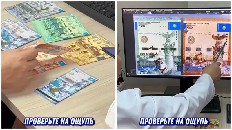 "То есть на просвет мы смотрим на водяные знаки. В казахстанских тенге – это голова барса, цифровое изображение банкноты. На 2000-ных и 5000-ных купюрах – это ныряющая нить. То есть когда мы смотрим на просвет она должна составлять одно целое", – пояснил Мансур Омарбеков.