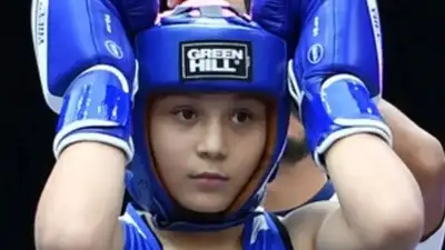 Победу 14-летняя спортсменка одержала техническим нокаутом во втором раунде над соперницей из Индии.