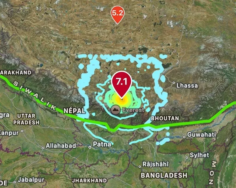 По данным Геологической службы США, магнитуда землетрясения составила 7,1 балла. Сейсмический центр Китая оценил магнитуду в 6,8 балла.