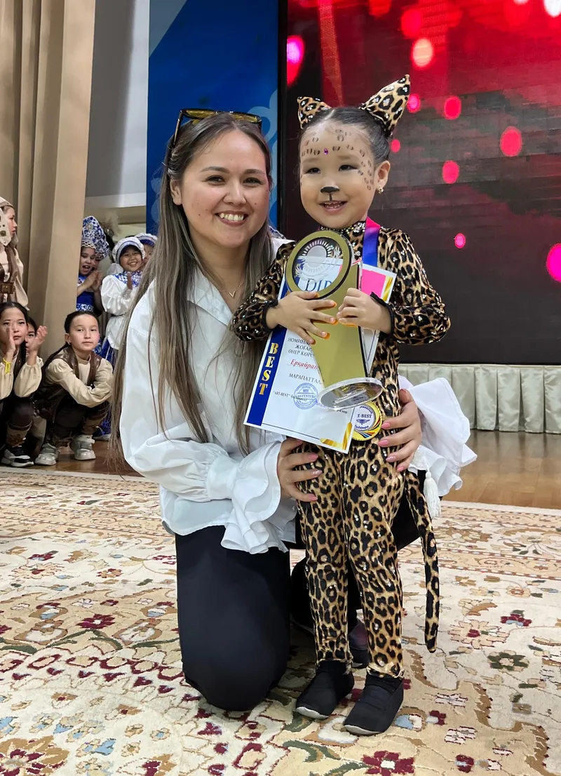 Не заметить Адину Еркайрат среди других талантов на площадке невозможно. Стильный образ: велюровый костюм, леопардовый принт, мерцающие стразы, милые ушки и хвост и звериный грим. А также блестяще исполненная роль. Хотя по плану ребенок должен был предстать другим хищником – львенком. Однако это ей не помешало стать обладательницей Гран-при и выиграть путевку в Ташкент и Дубай. Но обо всем по порядку.